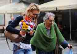 陽(yáng)臺(tái)上的鮮花是歐洲城市的生命,沒想到走進(jìn)維爾紐斯的老城區(qū),第一個(gè)迎接我卻是兩朵假花——窄巷口,紅瓦白墻的房檐下,兩張絨布太陽(yáng)花上的笑臉一樣那么燦爛。