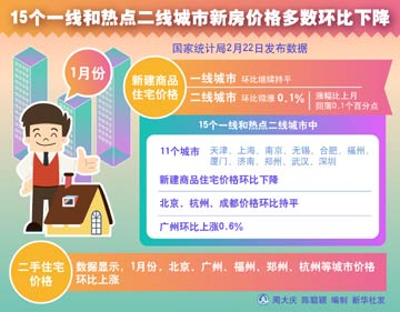 統(tǒng)計局數(shù)據(jù)顯示,1月15個熱點城市新建住宅價格、11個城市新建商品住宅價格環(huán)比下降,降幅在0.1至0.5個百分點之間;3個城市環(huán)比持平;廣州市環(huán)比上漲0.6%,漲幅已連續(xù)4個月回落。