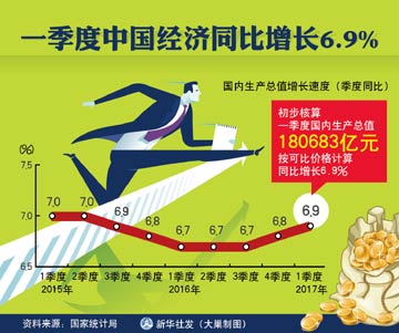 國家統(tǒng)計局17日公布了最新的國民經(jīng)濟運行數(shù)據(jù)。數(shù)據(jù)顯示,今年一季度,國內(nèi)生產(chǎn)總值(GDP)為180683億元,按可比價格計算,同比增長6.9%。從投資、工業(yè)生產(chǎn)、進出口等多項數(shù)據(jù)來看,一季度增長超出市場預期。
