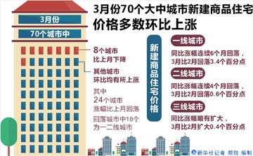 18日,國(guó)家統(tǒng)計(jì)局發(fā)布數(shù)據(jù)顯示,3月70個(gè)大中城市新建商品住宅價(jià)格環(huán)比增幅為0.7%,相比2月0.3%的增幅有所擴(kuò)大。但分城市來(lái)看,一二線熱點(diǎn)城市樓市已逐步開啟降溫通道。國(guó)家統(tǒng)計(jì)局重點(diǎn)監(jiān)控的3月15個(gè)一線和熱點(diǎn)二線城市,新建商品住宅價(jià)格同比漲幅全線回落,回落幅度在0.2個(gè)至6.0個(gè)百分點(diǎn)之間;環(huán)比指數(shù)方面,15個(gè)熱點(diǎn)城市中,九個(gè)城市新建商品住宅價(jià)格環(huán)比上漲,上海、南京、福州、武漢、深圳和成都等六個(gè)城市房?jī)r(jià)則環(huán)比下降。業(yè)內(nèi)人士預(yù)計(jì),隨著地方調(diào)控持續(xù)加碼,二季度房?jī)r(jià)增幅料將收窄。