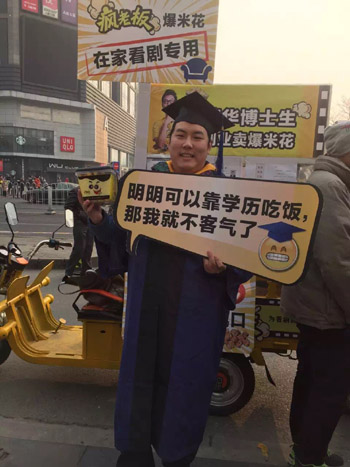 ??? “瘋老板”創(chuàng)始人酆尚寬在北京街頭推廣自己的品牌。(資料照片) |