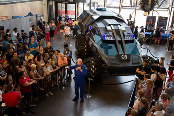 ??? 7月21日,在華盛頓的美國國家航空航天博物館,退休宇航員喬恩·麥克布賴德(中)為觀眾介紹“火星漫游概念車”。21日是美國國家航空航天博物館一年一度的“火星日”,旨在向公眾科普關(guān)于火星的知識。新華社發(fā)(沈霆 攝) |