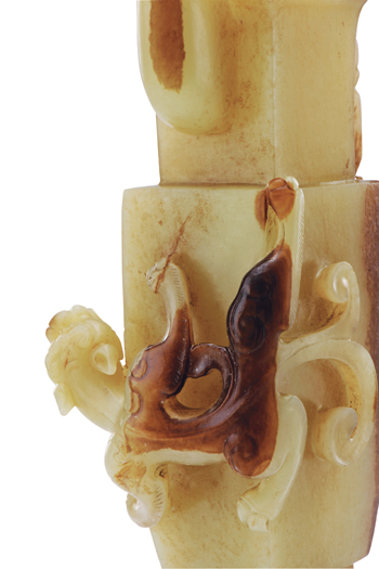 明黃玉提色螭龍執(zhí)壺(局部) |