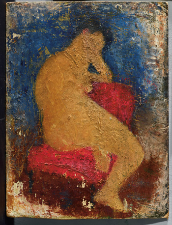 如果說(shuō),《窗前裸女》為潘玉良從古人中求我,但不依古人之法,是其對(duì)于東西藝術(shù)精髓上的提煉、吸收與超脫,爽朗而直接地描繪出她心中落落大方的時(shí)代女性?!渡街腥号!穭t是表達(dá)了潘玉良的另一個(gè)創(chuàng)作方向,以一種較為隱晦的方式,傳達(dá)她對(duì)于家庭與親情的渴望。