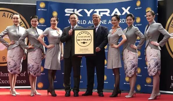 全球航空公司與機場服務權威調研機構SKYTRAX主席Edward Plaisted向海南航空總裁孫劍鋒頒發(fā)五星航空公司獎牌