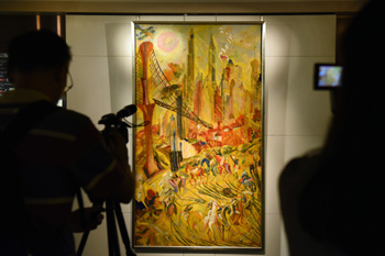 ??? 香港蘇富比21日在港展出旅美華人現(xiàn)代藝術(shù)家朱沅芷的巨幅油畫(huà)作品《工業(yè)之輪在紐約》,為本季秋拍現(xiàn)當(dāng)代藝術(shù)領(lǐng)域估值最高的一幅畫(huà),估價(jià)為0.8億至1.2億港元。據(jù)悉,朱沅芷為首位獲邀參展紐約現(xiàn)代美術(shù)館(MoMA)的華人藝術(shù)家。