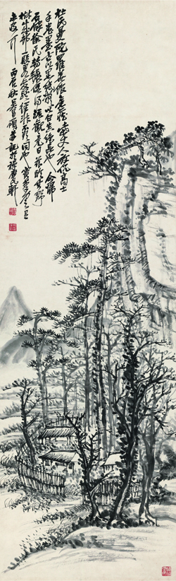 具體來看,今年上海首拍的近現(xiàn)代書畫夜場中,“正道——近現(xiàn)代書畫夜場”精心挑選60余件近現(xiàn)代名家扛鼎力作。張大千的《摩詰詩意圖》、《墨荷圖》,尺幅巨大,且由臺靜農(nóng)上款。潘天壽《江洲夜泊圖》為潘氏風(fēng)格已臻成熟期的佳作,明豁嚴實,筆意奔放,超逸空靈而韻味無窮。徐悲鴻的馬已成為中國現(xiàn)代美術(shù)史上最經(jīng)典的意象與符號,《秋風(fēng)立馬》、《奔馬》均為其畫馬成熟時期的代表作品。齊白石作于1929年的《松鷹》,取縱式構(gòu)圖,具有強烈的氣勢和無與倫比的力量感。傅抱石是近代中國最有創(chuàng)意的藝術(shù)家,以山水畫成就最高,其中《松澗尋幽》與《聽雨圖》,將“抱石皴”的筆法發(fā)揮得淋漓精致。黃胄先生創(chuàng)作于1973年的《馴馬圖》構(gòu)圖獨具匠心,造型準確生動,線條流暢遒勁,筆勢奔放灑脫。