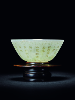 ??? 清代 乾隆御制詩文描金玉碗(帶古玉椀托) |