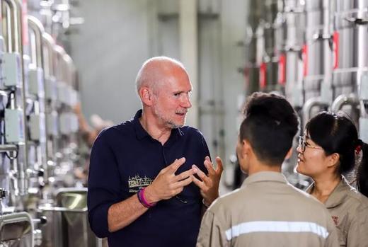 摩塞爾在發(fā)酵車間和年輕員工交流