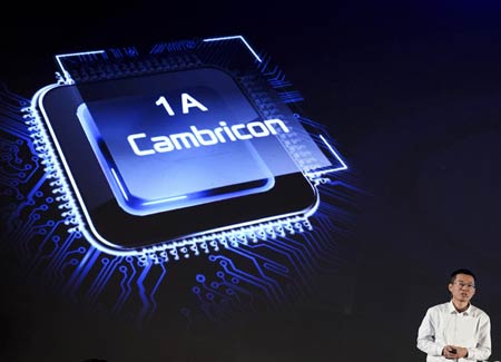 11月6日,中科院計算所研究員、寒武紀公司首席執(zhí)行官陳天石在介紹寒武紀人工智能芯片。