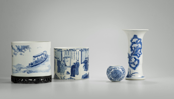 景德鎮(zhèn)的明代御器廠在萬歷三十六年(1608年)正式輟燒,這意味著民窯可以完全擺脫皇權(quán)的各種鉗制,進入了一個空前繁榮的輝煌時代。過去被御器廠壟斷的優(yōu)質(zhì)原材料、先進技術(shù)與高級窯工,如今都轉(zhuǎn)向民窯作坊,龐大的外銷訂單與繁榮的內(nèi)銷市場刺激了民窯作坊在規(guī)模與質(zhì)量上的雙飛躍。青花與五彩瓷是十七世紀的主流產(chǎn)品,景德鎮(zhèn)此時制瓷的分工與流程也越來越細致、繁復、專業(yè),產(chǎn)品品質(zhì)自然也越來越高。許之衡在《飲流齋說瓷》中評價“硬彩、青花均以康熙為極軌?!眰鹘y(tǒng)的山水紋樣始終是畫匠與窯師們最愛的題材之一。得益于瓷胎與青花料的提純技術(shù)的提高,青花瓷上的山水開始與傳統(tǒng)的繪畫技法風格融合,所謂紙絹上講究墨分五色的水墨變化效果,也被應(yīng)用在青花瓷器的發(fā)色濃淡層次變化上,并結(jié)合各種筆皴之法,使此時瓷器上的山水圖成為了純粹的繪畫藝術(shù)。硬冷的瓷面上,如手卷般徐徐展開的山川河流、寒峰雅舍,或是華茂參天的古樹,在王朝更迭、山河變色的大時代里,顯得更加意味深長,高潔雋永。他們是道德禮樂的制定者,卻也是離經(jīng)叛道的破壞領(lǐng)袖;他們是精神境界的倡領(lǐng)者,卻也是風花雪月的糜爛分子;他們是文化品位的創(chuàng)造者,卻也是懷才不遇的落魄之徒。他們就是古代的文人士大夫。晚明以后,在國破家亡的歷史轉(zhuǎn)折里,大批從追求仕途中解放出來的文人名士,紛紛轉(zhuǎn)向社會活動,他們的藝術(shù)才情開始向建筑、造園、工藝、版畫、家具、制瓷等諸多工商業(yè)領(lǐng)域傾注延伸,他們結(jié)社交游、賞鑒古董、吟風弄月、怡情養(yǎng)生,將高雅脫俗的精神境界與日常生活相結(jié)合,從而形成了一套獨特而完整的藝術(shù)生活體系,成為了整個社會的藝術(shù)、時尚、審美、品級的指南與指標。