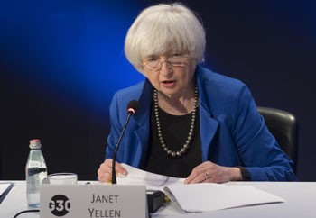 ??? 美國聯(lián)邦儲備委員會主席珍妮特·耶倫11月20日稱,在下任美聯(lián)儲主席宣誓就任后,她將辭去美聯(lián)儲理事一職。這是2017年10月15日耶倫在華盛頓出席會議的資料照片。新華社/法新 |