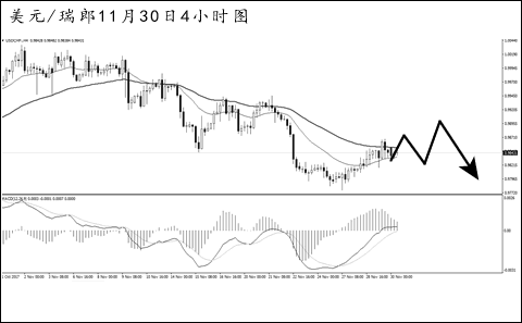 ▲美元兌瑞郎繼續(xù)對此前的下跌進行調整,但下跌趨勢保持完好,雖然本周發(fā)生了一定的上攻,但幅度和斜率都很有限。短線的走勢較為凌亂,預計后市向下發(fā)生突破的概率較大,等待動能爆發(fā)后的跟進入場機會。