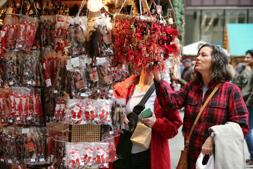 11月28日,人們在美國芝加哥圣誕市場上選購圣誕裝飾。位于芝加哥市中心戴利廣場的圣誕市場每年從11月感恩節(jié)前后到圣誕節(jié)結束之前開放,是芝加哥最受歡迎的冬季景點之一。記者 汪平 攝
