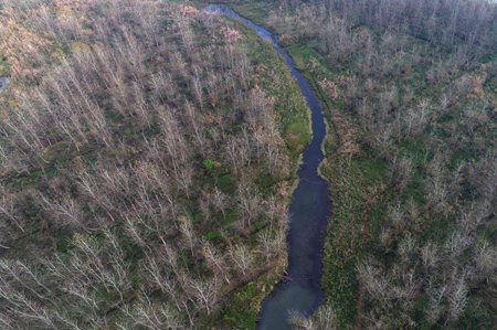 圖為2017年11月27日,位于湖南沅江市的南洞庭湖自然保護(hù)區(qū)核心區(qū)內(nèi)一大片等待清理的歐美黑楊林。記者 李尕/攝