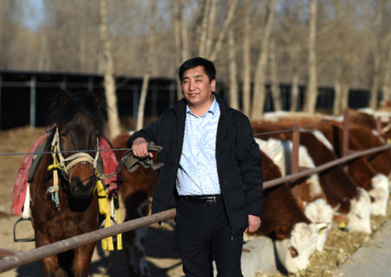 新當(dāng)選的全國人大代表吳云波是內(nèi)蒙古自治區(qū)扎魯特旗巴彥塔拉蘇木東薩拉嘎查黨支部書記。2013年起,吳云波組建合作社,吸收農(nóng)牧民加入。目前合作社總資產(chǎn)達到3400萬元,帶動37戶貧困戶穩(wěn)定脫貧。吳云波希望,通過發(fā)展壯大農(nóng)牧區(qū)合作社等經(jīng)營模式,讓全體農(nóng)牧民共享新時代的發(fā)展成果。這是吳云波在合作社養(yǎng)殖基地(2月25日攝)。新華社記者 任軍川 攝