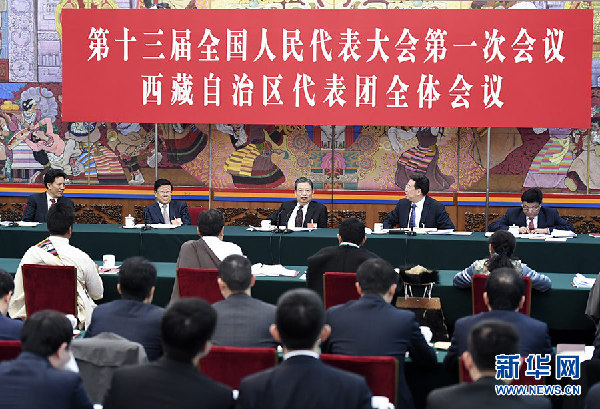 3月10日,中共中央政治局常委、中央紀委書記趙樂際參加十三屆全國人大一次會議西藏代表團的審議。 新華社記者 張領 攝