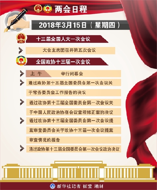 十三屆全國人大一次會議15日安排代表休息。大會主席團(tuán)召開第五次會議。