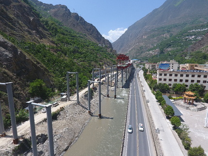 圖為修建中的汶川至馬爾康高速公路,作為災(zāi)后重建重點項目,這條路建成后將結(jié)束四川阿壩藏族羌族自治州首府馬爾康不通高速公路的歷史。記者 劉坤 攝