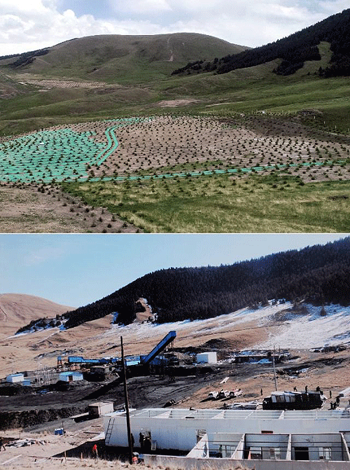 下圖為2017年1月18日拍攝的金昌市永昌縣馬營溝煤礦下泉溝礦區(qū)整治前景象(下圖由永昌縣提供)。
