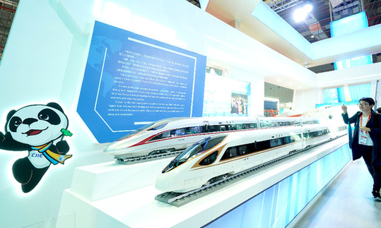 在首屆進(jìn)博會(huì)的國(guó)家展上設(shè)立的中國(guó)館,占地約1500平方米,取名“共羽華平”。代表中國(guó)企業(yè)創(chuàng)新成果的復(fù)興號(hào)高鐵、國(guó)產(chǎn)大飛機(jī)、港珠澳跨海大橋等悉數(shù)亮相,吸引著世界各國(guó)參展商的目光。