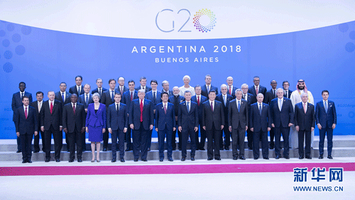 當(dāng)?shù)貢r間11月30日,二十國集團(tuán)領(lǐng)導(dǎo)人第十三次峰會在阿根廷布宜諾斯艾利斯舉行。國家主席習(xí)近平出席第一階段會議并發(fā)表題為《登高望遠(yuǎn),牢牢把握世界經(jīng)濟正確方向》的重要講話。這是習(xí)近平同其他與會領(lǐng)導(dǎo)人合影。 新華社記者 李濤 攝