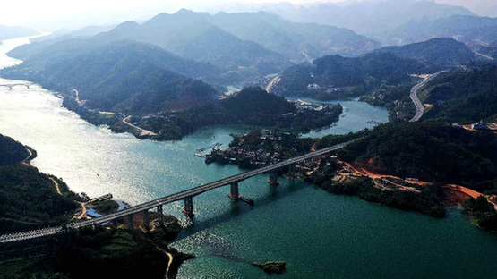 廣西60周年大慶重大公益性項(xiàng)目陸續(xù)建成并投入使用。圖為項(xiàng)目之一的橫跨紅水河的廣西河池至百色高速公路。新華社發(fā) (高東風(fēng) 攝)