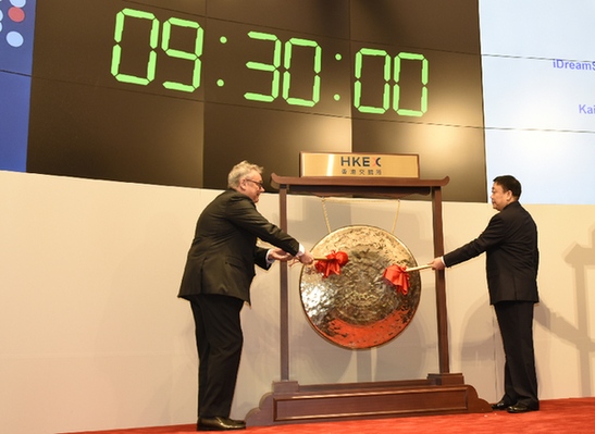 兗礦集團(tuán)董事長李希勇、兗煤澳洲獨(dú)立非執(zhí)行董事芮捷銳為兗煤澳洲在港交所上市敲鑼。(資料照片)