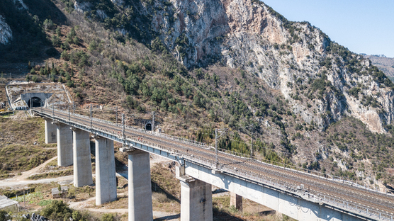 春運期間,中國鐵路成都局集團有限公司六盤水工電段的橋隧工人堅守在位于烏蒙山區(qū)滬昆鐵路天生橋特大橋檢查崗位上,保障春運列車安全通行。