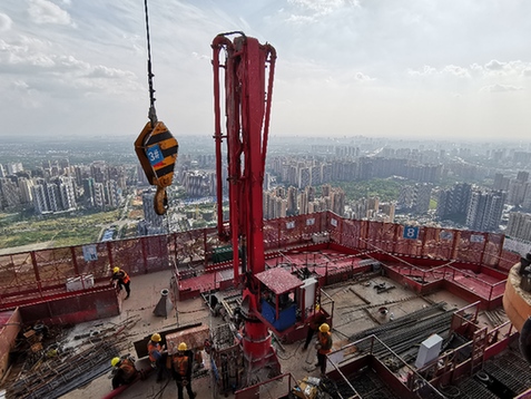 四川成都的驛都大道旁,200多米高空,一架目前世界唯一的“廻轉(zhuǎn)塔機”正在作業(yè)。因為它能一邊造樓一邊自主爬升,修得快,爬得高,又被形象地稱作“造樓神器”“空中造樓機”。它的出現(xiàn)讓我國超高層建筑的建設(shè)能力大大提升。