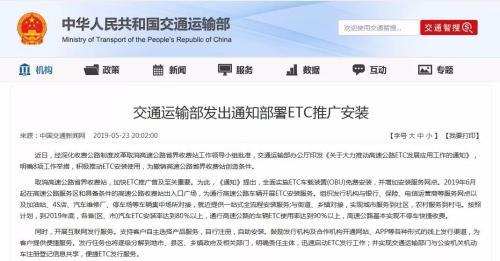 隨后,交通運(yùn)輸部印發(fā)了《關(guān)于大力推動(dòng)高速公路ETC發(fā)展應(yīng)用工作的通知》,在全國范圍內(nèi)全面開始推動(dòng)ETC的免費(fèi)安裝工作。2019年6月起在高速公路服務(wù)區(qū)和具備條件的高速公路收費(fèi)站出入口廣場,為通行高速公路車輛開展ETC安裝服務(wù)。
