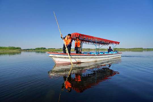 初夏的白洋淀,水清葦綠,暖風習習,游船途經(jīng)之處波光粼粼,猶如鑲嵌在華北平原上的一顆璀璨明珠。
