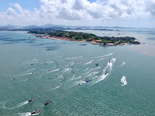在2019年首屆福清開漁節(jié)暨海洋文化旅游節(jié)上,漁船在海上行駛。記者 姜克紅 攝
