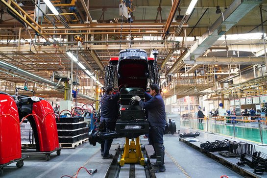 圖為工人在一拖集團(tuán)工廠的生產(chǎn)流水線上工作。記者 盧燁 攝