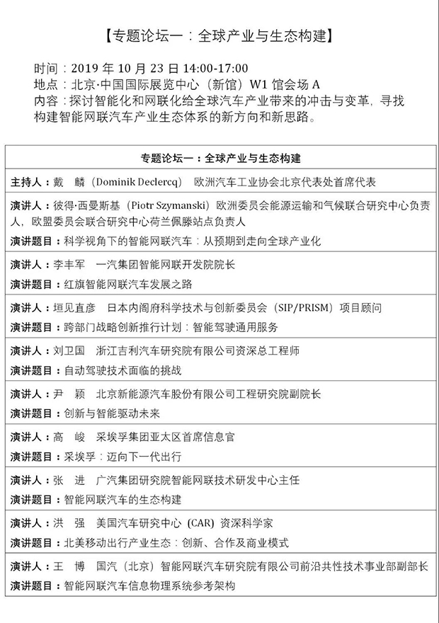 經(jīng)國務(wù)院批準(zhǔn),世界智能網(wǎng)聯(lián)汽車大會(WICV) 將于2019年10月22-25日在北京隆重召開。大會著眼于全球智能網(wǎng)聯(lián)汽車產(chǎn)業(yè)的生態(tài)環(huán)境構(gòu)建和產(chǎn)業(yè)升級,通過主論壇及專題論壇、院士講堂、開發(fā)者大會、閉門會等多種形式,共同交流探討智能網(wǎng)聯(lián)汽車在技術(shù)創(chuàng)新、政策導(dǎo)向、市場模式等領(lǐng)域的成功經(jīng)驗(yàn)與發(fā)展趨勢,凝聚產(chǎn)業(yè)共識,明晰政策方向,探索技術(shù)路徑。 主辦單位:北京市人民政府、工業(yè)和信息化部、公安部、交通運(yùn)輸部、中國科學(xué)技術(shù)協(xié)會 承辦單位:工業(yè)和信息化部裝備工業(yè)發(fā)展中心、北京市經(jīng)濟(jì)和信息化局、中國電子信息產(chǎn)業(yè)發(fā)展研究院、北京市順義區(qū)人民政府、中國國際貿(mào)易促進(jìn)委員會機(jī)械行業(yè)分會、中國電工技術(shù)學(xué)會 時間:2019年10月22日-25日 |