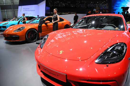 第十七屆廣州國際汽車展覽會(huì)上的保時(shí)捷汽車展區(qū)。記者 鄧華 攝