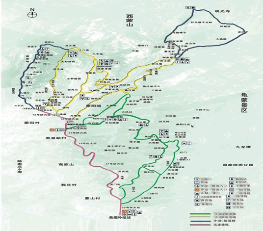 據(jù)悉,蒙山國家登山健身步道項總體規(guī)劃“一線四片區(qū)”:即一條東西縱貫蒙山的步道連線連接龜蒙片區(qū)、云蒙片區(qū)、天蒙片區(qū)、彩蒙片區(qū)四個片區(qū)。一期規(guī)劃建設(shè)龜蒙片區(qū)登山健身步道網(wǎng)絡,步道分A/B/C三級標準路段,五處步道入口,連接6個村鎮(zhèn),輻射周邊百姓1萬余人,包含3處大型救援站,及60公里柏油路連接線。建設(shè)有完善的接待服務系統(tǒng)、導覽標識系統(tǒng)、救援系統(tǒng)、環(huán)保系統(tǒng)、休憩點、觀景臺、衛(wèi)生間、營地等配套設(shè)施。2018年,步道先后被國家體育總局授牌國家登山健身步道-蒙山站,納入國家、山東省優(yōu)質(zhì)體育產(chǎn)業(yè)名錄,并納入了臨沂市“十三五”規(guī)劃。