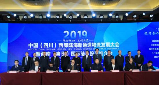 12月26日,由四川省人民政府口岸與物流辦公室、自貢市人民政府主辦,自貢市口岸與物流辦公室、四川省現(xiàn)代物流發(fā)展促進(jìn)會承辦的2019中國(四川)西部陸海新通道物流發(fā)展大會暨西南(自貢)國際陸港投資推介會、西部陸海新通道發(fā)展研討會同期舉行,會議現(xiàn)場簽約12個項目合作協(xié)議。