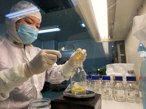 進(jìn)入車間前,每位員工按集團(tuán)統(tǒng)一要求更換防護(hù)服,并進(jìn)行洗消作業(yè),確保生產(chǎn)全程無菌。