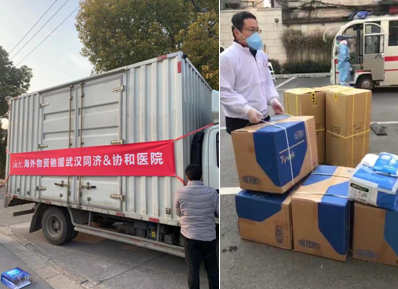 ??? 2月4日上午,海爾智家海外第一批防疫物資經(jīng)過2天的輾轉(zhuǎn),抵達(dá)華中科技大學(xué)同濟(jì)醫(yī)學(xué)院附屬協(xié)和醫(yī)院和華中科技大學(xué)同濟(jì)醫(yī)學(xué)院附屬同濟(jì)醫(yī)院。