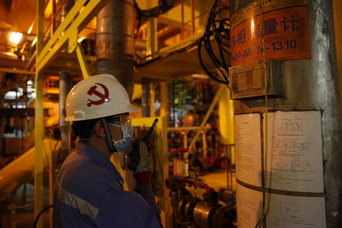 中國海油南海西部油田海上平臺(tái)員工堅(jiān)守一線崗位,對(duì)現(xiàn)場生產(chǎn)設(shè)施進(jìn)行巡檢和維護(hù),確保海上油氣田對(duì)民生供氣的穩(wěn)定充足。(企業(yè)供圖)