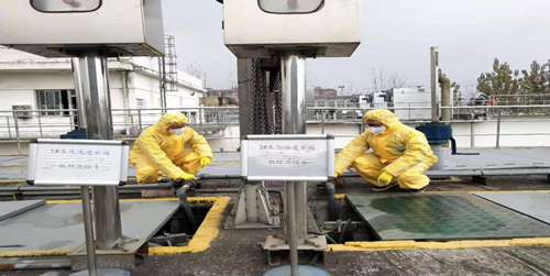 成都環(huán)境投資集團(tuán)有限公司一線員工在生化池進(jìn)行點檢及過程采樣