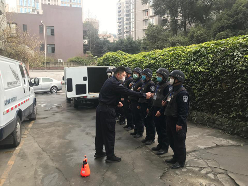中融安保集團(tuán)有限責(zé)任公司翼虎押運大隊出發(fā)前進(jìn)行消毒準(zhǔn)備