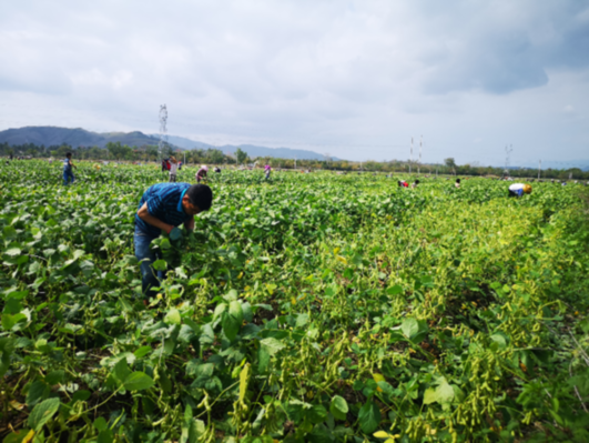 記者2月6日上午在樂東黎族自治縣抱由鎮(zhèn)多建村看到,兩三百人在毛豆種植基地抓緊采收。