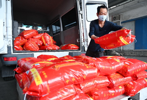 2月8日,福州糧食批發(fā)交易市場一家商鋪的工作人員在搬運大米。連日來,福建省內(nèi)糧食企業(yè)采取多種措施,穩(wěn)定市場供應,保障居民日常消費需求。目前,全省糧食市場貨源充足,價格平穩(wěn)。記者 林善傳 攝