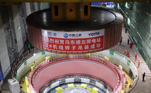 近日,由中國能建葛洲壩集團(tuán)承擔(dān)安裝施工任務(wù)的烏東德水電站左岸地下電站5號機組轉(zhuǎn)子成功吊裝。資料照片