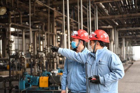 2月20日,在中國石化集團(tuán)重慶川維化工有限公司,工作人員在生產(chǎn)線上巡檢。記者 唐奕 攝