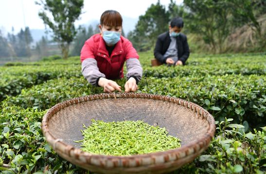 由于冬暖明顯,2月5日起,浙南溫州、麗水等地“烏牛早”春茶已陸續(xù)開采,較常年提早大約1周時(shí)間。在麗水市縉云縣胡源鄉(xiāng),8000多畝的茶樹已萌發(fā)新芽。一大早,茶農(nóng)們就戴上口罩,在茶園里忙碌了起來。“能采摘多少是多少,把茶青加工成干茶葉放起來,等疫情過去可以拿到市場上賣?!辈柁r(nóng)胡愛仙說。