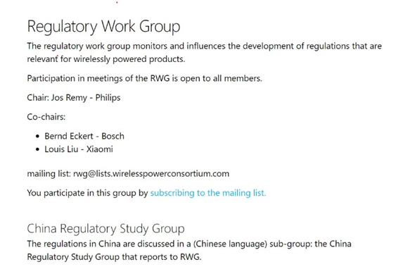 在剛結(jié)束的無線充電標準聯(lián)盟(WPC)2020年第1次全會上,來自小米集團技術(shù)委員會標準與新技術(shù)部專家劉洋成功當選聯(lián)盟RWG(Regulation Work Group)聯(lián)席主席,RWG組共設(shè)一位主席和兩位聯(lián)席主席,小米是中國手機公司里唯一有擔任主席職位的公司。