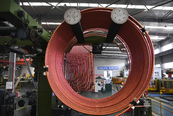 工人在位于重慶萬州的金龍銅管集團生產(chǎn)車間工作。記者 王全超 攝